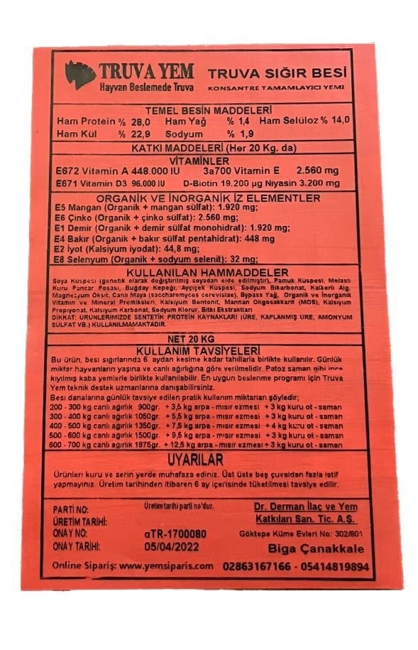 Besi sığırlarının beslenmesinde işletmeler kendi tahıl ve kaba yemleri üretebilirken, protein ve premiks kaynaklarını dışarıdan temin etmek zorundadır. Bu nedenle en az dışa bağımlı hammadde temin edebilmek için dengeli ve yeterli protein ve premiks kaynaklarını Truva Besi Yeminin içinde bulabilirsiniz.